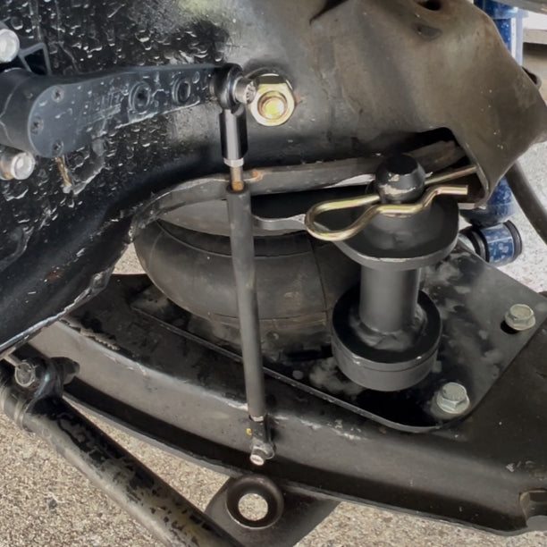 One of the standout features of the AirSafe™ kit is its innovative quick removal and installation bump stop. Crafted from forged 1040 steel, this bump stop ensures durability and reliability in even the most demanding situations, when needed. If you have a jack with you that can get under your car in an air out event, you can put them in to keep the front of the car elevated—if you don't want to drive with them in. Our suggestion would be to use the longer bumps for longer tours or drives, then pull them out at the show or when you get home to air out completely.